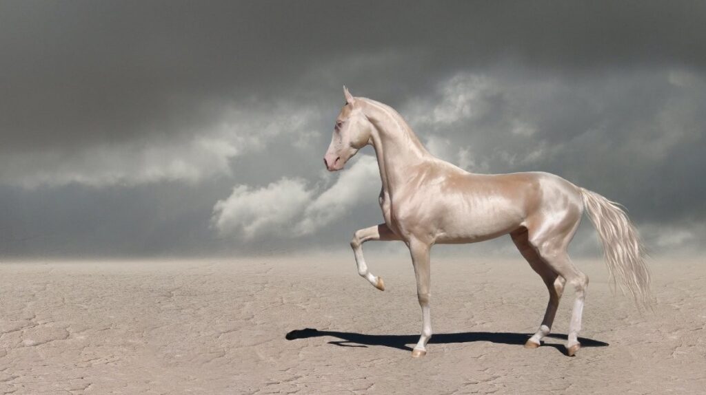 - بالومينو: تنتج خيول أخال تيكي بعض خيول بالومينو المدهشة، والتي غالبًا ما تكون مزينة بـ”كروم” (العلامات البيضاء على الأرجل والوجه) بشكل واضح.